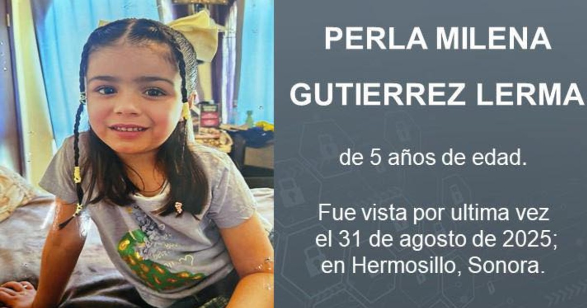 La Fiscalía General de Justicia del Estado de Sonora (FGJES) activó la alerta Amber Sonora para la búsqueda y localización de la menor de 5 años de edad, Perla Milena Gutiérrez Lerma, quien fue sustraída el 31 de agosto de 2025 de la colonia Pitic, en Hermosillo, Sonora.