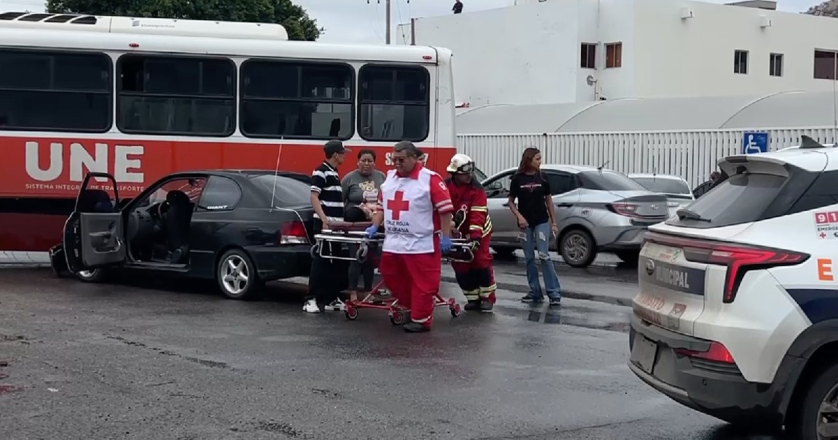 Mujer resultó lesionada tras accidente de tránsito en Hermosillo, donde participó línea 6 del transporte público
