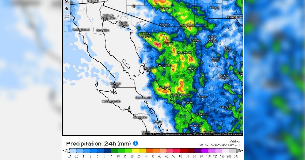 Por otro lado, el Frente Frío Número 4 se aproximará a la frontera norte del país este jueves, ocasionando fuertes rachas de viento, un ligero descenso en las temperaturas y un aumento en la probabilidad de tormentas para este fin de semana en Sonora.