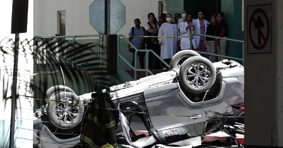 Conductora confunde freno con acelerador y cae desde estacionamiento en hospital privado en Hermosillo