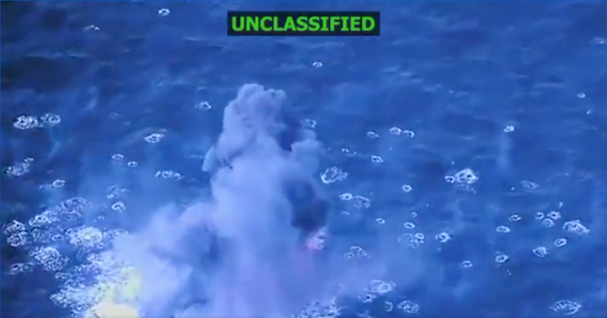 En un video de 40 segundos compartido a través de su cuenta de X, se ve a la embarcación navegando por el agua, cuando es alcanzada por proyectiles que ocasionaron su explosión.