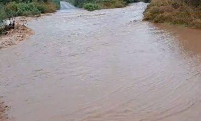 VIDEO Cierran tramo carretero Tepache-Moctezuma por crecida de arroyo debido a intensas lluvias; así corre el agua