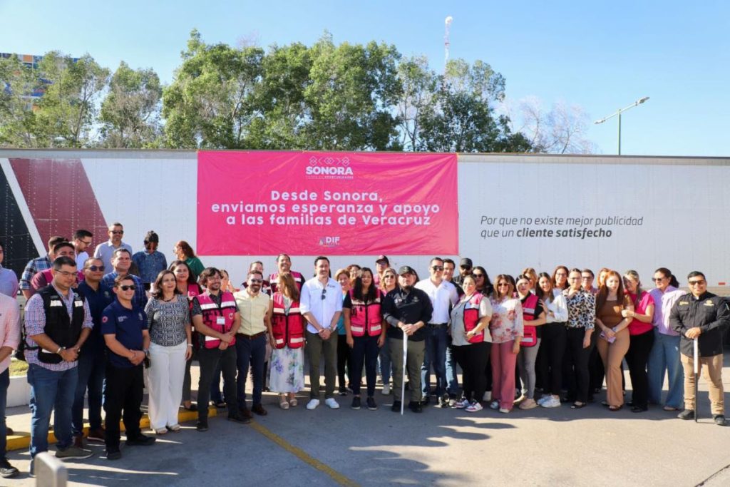 El Gobierno de Sonora, a través de la Coordinación Estatal de Protección Civil (CEPC), participó en el banderazo de salida de un camión que transporta cerca de 20 toneladas de víveres para los damnificados por las lluvias en Veracruz.