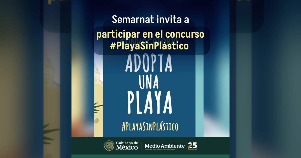 La Secretaría de Medio Ambiente y Recursos Naturales (Semarnat), a través de la Subsecretaría de Biodiversidad y Restauración Ambiental, invita a participar en el concurso #PlayaSinPlástico.