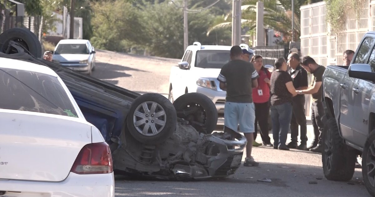 El automovilista circulaba de sur a norte por la calle Ónix y, poco antes de llegar a la intersección con la calle Zafiro, se impactó contra un sedán estacionado, lo que provocó que su unidad terminara volcada.