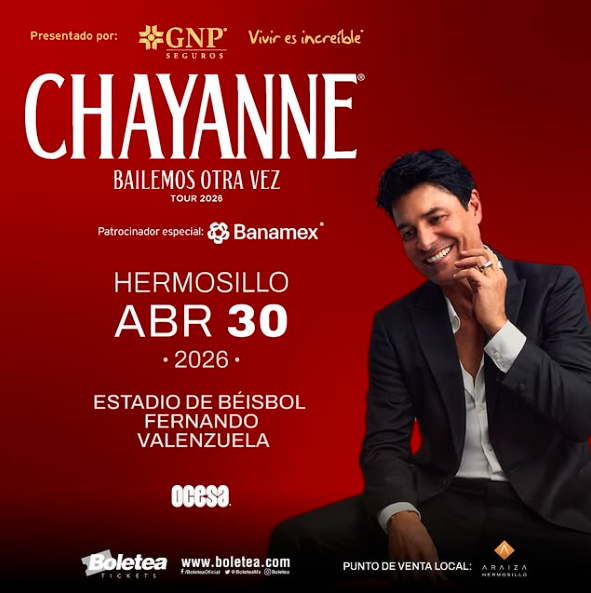 El concierto de Chayanne en Hermosillo apunta para ser uno de los eventos más grandes del próximo año, el cual tendrá lugar el jueves 30 de abril en el Estadio Fernando Valenzuela, anticipándose un lleno total.