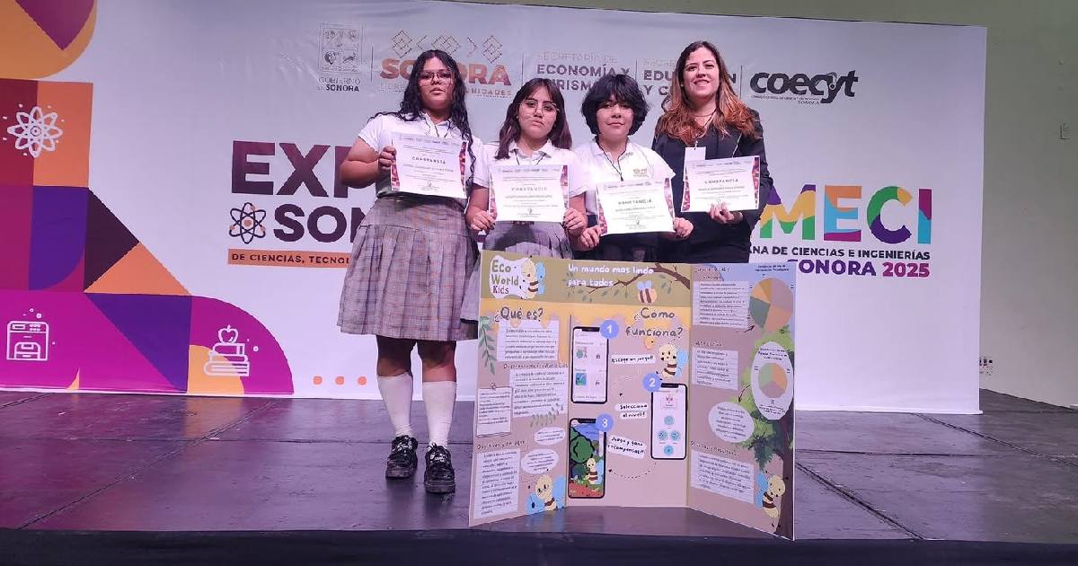 Marisol Guadalupe Buitimea Tienda, Lizbeth Guadalupe Vega López y Elisa Isabel Mijares Tobías, del plantel Obregón tres, con el proyecto Eco World Kids; así como Ian Jesús Sandoval Robles, Jesús Emiliano Varela Monzón y Armando Esquivel Aragón, del plantel SIRM, con “Hidroponía en Óptimo Crecimiento”, ganaron la fase estatal y participarán en la etapa nacional.