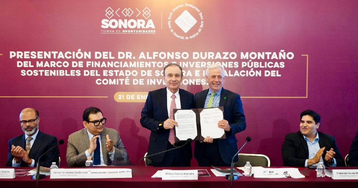 Como parte de esta estrategia, el mandatario sonorense, acompañado de Carlos Hernández Cordero, secretario de Hacienda del estado de Sonora, firmó un acuerdo de colaboración con el Banco de Desarrollo de América del Norte (NadBank), el cual contempla asistencia técnica financiera, asesoría en sostenibilidad ambiental y atención prioritaria a los retos hídricos de la región fronteriza.