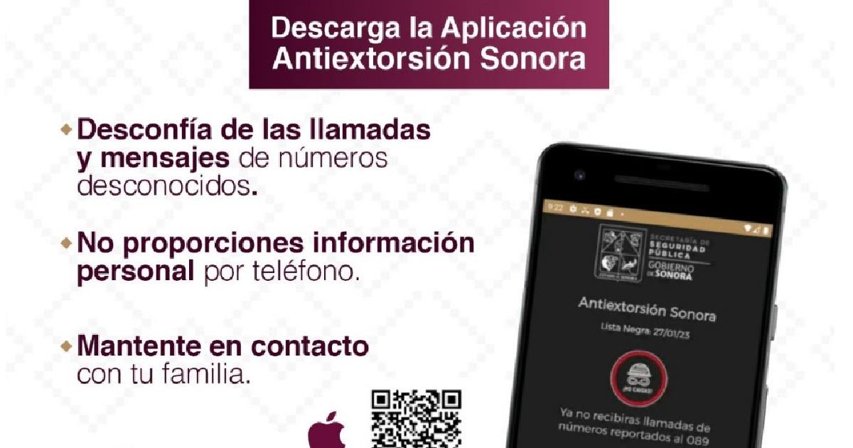 Para prevenir que las y los sonorenses sean víctimas de extorsión telefónica, la Secretaría de Seguridad y Protección Ciudadana (SSPC) recomendó descargar la aplicación móvil Antiextorsión Sonora, una herramienta tecnológica de fácil uso y totalmente gratuita.