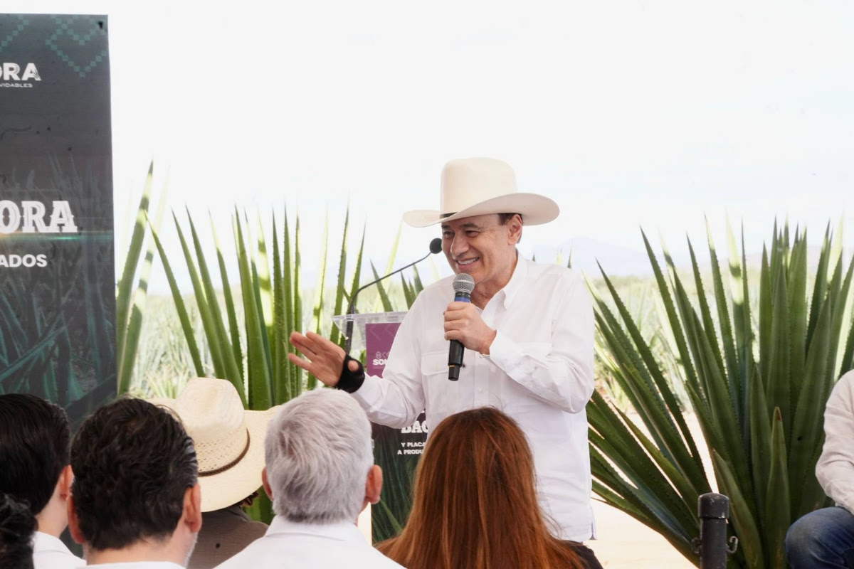 Durante el evento, realizado en el Rancho El Seri, el mandatario sonorense entregó las primeras dos certificaciones oficiales de bacanora correspondientes a lotes que concluyeron satisfactoriamente el proceso de evaluación ante el Consejo Sonorense Regulador del Bacanora (CSRB), así como 10 placas simbólicas de codificación a productores cuyas vinatas ya han sido inspeccionadas y autorizadas.