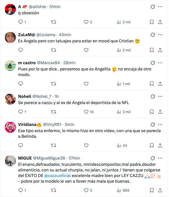 En las imágenes promocionales y escenas del video, aparece una modelo cuya apariencia ha generado comparaciones inmediatas entre los usuarios de redes sociales. Algunos internautas aseguran que guarda un notable parecido con Cazzu, expareja del cantante y madre de su hija, mientras que otros consideran que sus rasgos evocan también a su actual esposa, Ángela Aguilar.