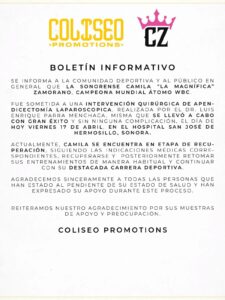 La boxeadora hermosillense Camila Zamorano fue operada y se recupera favorablemente