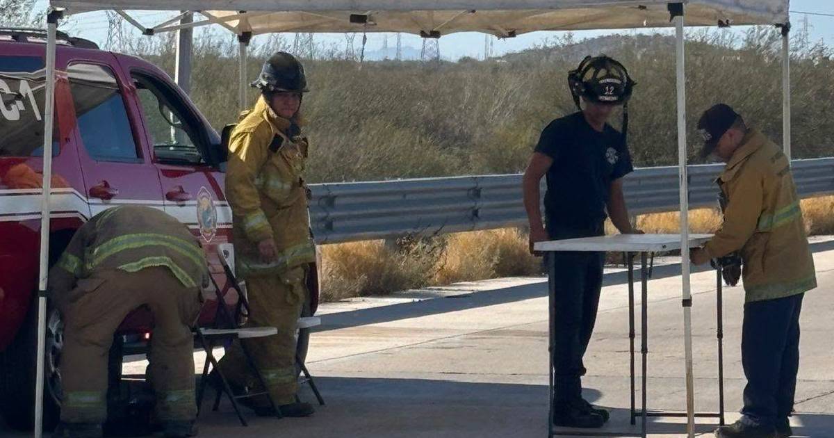 Elementos del Cuerpo de Bomberos de Hermosillo, en coordinación con Protección Civil Sonora y otras corporaciones, atendieron la volcadura de una pipa que transportaba gas en la carretera que conecta Hermosillo con Guaymas.