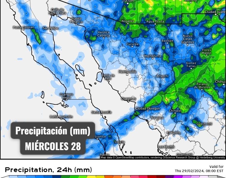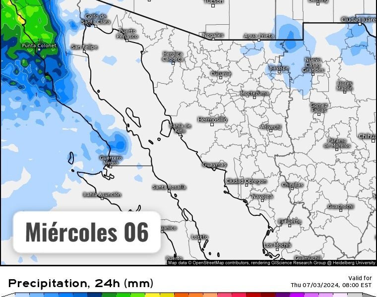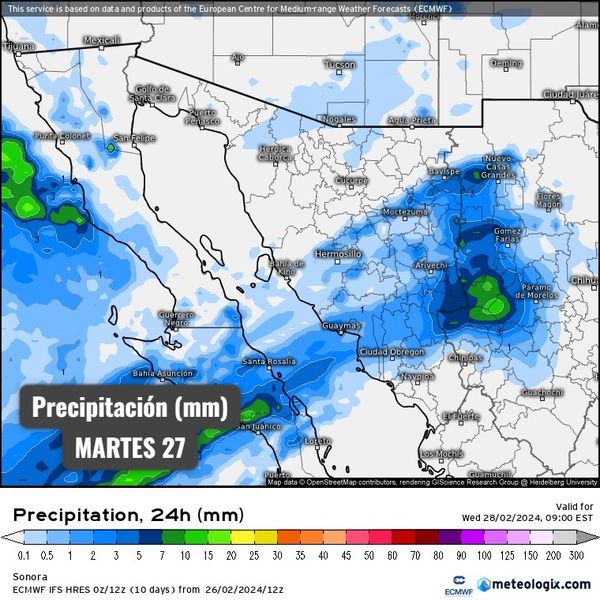 En el transcurso del día de hoy el nuevo frente frío interaccionaría con una vaguada polarpudiendo dejar lluvias moderadas para el norte y noreste de Sonora....