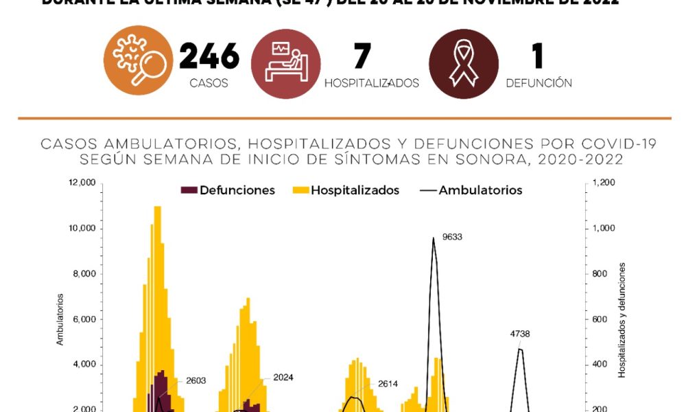 La Secretaría de Salud de Sonora confirmó que se registraron 246 nuevos casos de Covid-19 en la entidad, así como una defunción a causa de la...