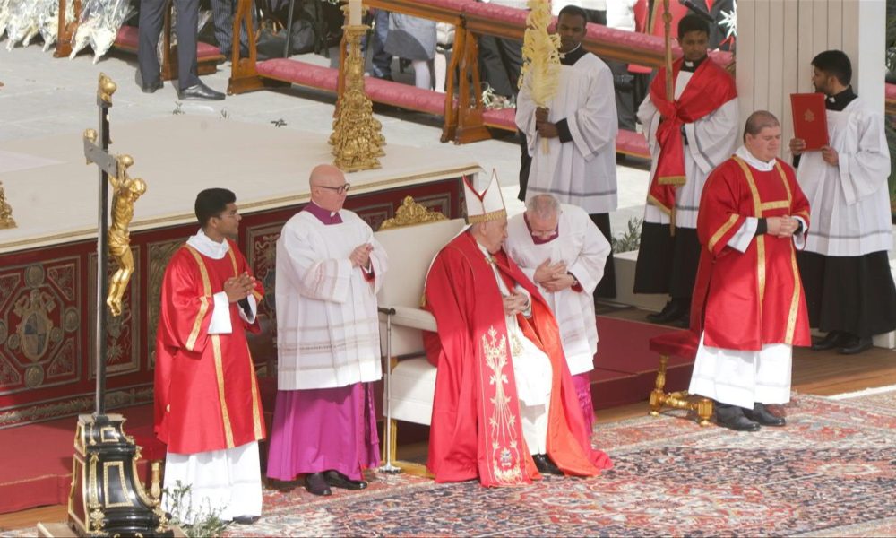 En la Plaza de San Pedro, el Papa presidió la celebración del Domingo de Ramos, el último antes de la Pascua, ante una multitud de aproximadamente...