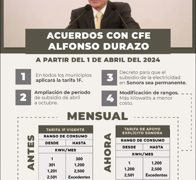El gobernador de Sonora, Alfonso Durazo, confirma que el subsidio de CFE se extenderá y se respetará el compromiso de tarifas más bajas en #Sonora A...