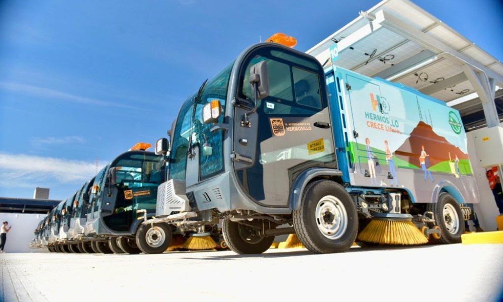 El presidente municipal de Hermosillo Antonio Astiazarán entregó la primera flotilla de barredoras eléctricas en la ciudad, e inauguró una estación de carga solar para las...