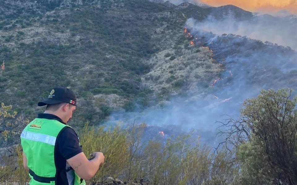 Las brigadas rurales combaten un enorme incendio forestal en la Sierra Los Gavilanes entre Nogales e Imuris que está ocasionando mucha contaminación por monóxido de carbono...