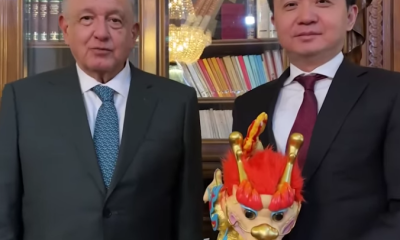 En Palacio Nacional el presidente Andrés Manuel López Obrador recibió al embajador de laRepública Popular China en México, Zhang Run, quien le obsequió un dragón de...