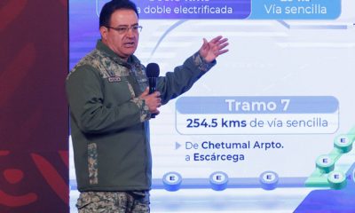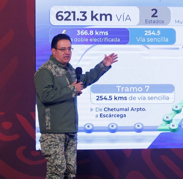 El director general de la empresa Tren Maya S.A. de C.V., Óscar David Lozano Águila, diodetalles sobre los tramos 5, 6 y 7 que cruzan 11...