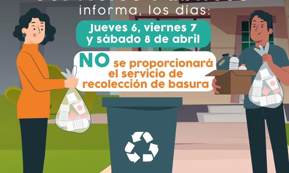 Del jueves 6 y hasta el sábado 8 de abril no habrá recolección de desechos domésticos en los domicilios de la ciudad, por lo que la...