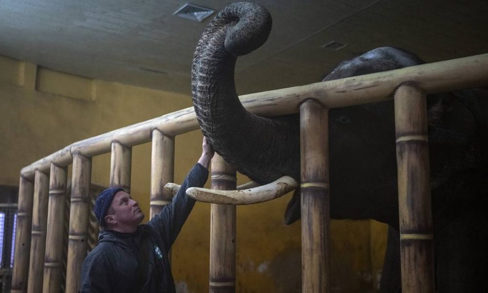 En medio de los bombardeos rusos contra la infraestructura energética de Ucrania y de las bajas temperaturas invernales, el personal del zoológico de Kiev mantiene una...