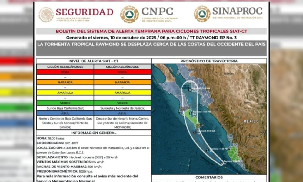 Según la Coordinación Estatal de Protección Civil, el día de hoy a las 15:00 horas, el centro de la tormenta tropical Lorena se localiza a 255...