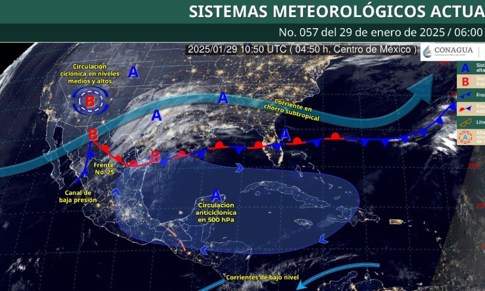 Con información del Servicio Meteorológico Nacional, para hoy, la masa de aire ártico reforzada asociada al frente frío No. 24, en interacción con una vaguada en niveles altos de la atmósfera...