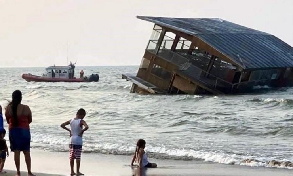 El restaurante flotante “El Atracadero”, que se desprendió del malecón de Tuxpan al norte de Veracruz tras las lluvias provocadas por los fenómenos metereológicos Priscila y...