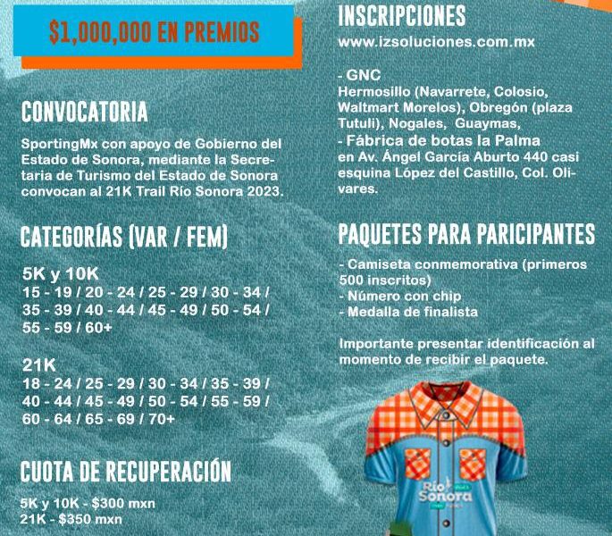 El 15 y 16 de abril se realizará el 21K Trail Río Sonora, una carrera que reúne a atletas no solo del estado de Sonora sino...