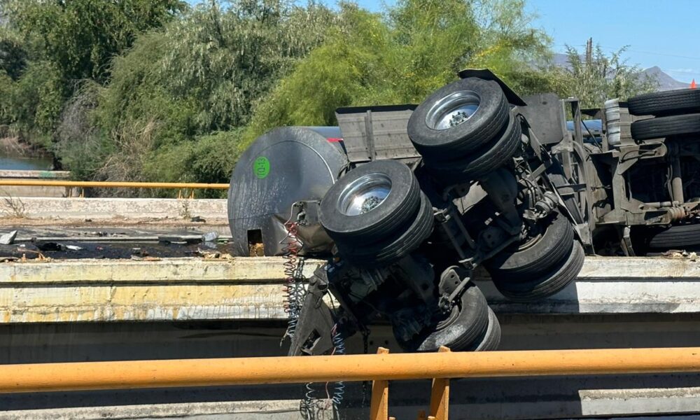 Controlan volcadura de pipa con gas en la carretera Hermosillo–Guaymas