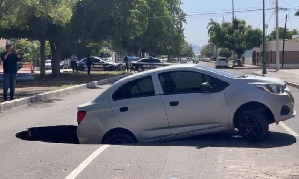 Un vehículo particular cayó en un socavón la mañana de este miércoles en la calle Náinari, entre Zacatecas y Puebla, en el centro de Ciudad Obregón,...