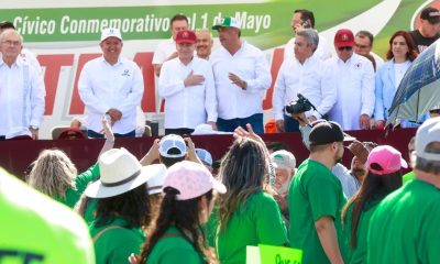 El gobernador del estado de Sonora Alfonso Durazo Montaño participó en el desfile por el Día del Trabajo en Hermosillo, en donde se dieron cita afiliados...