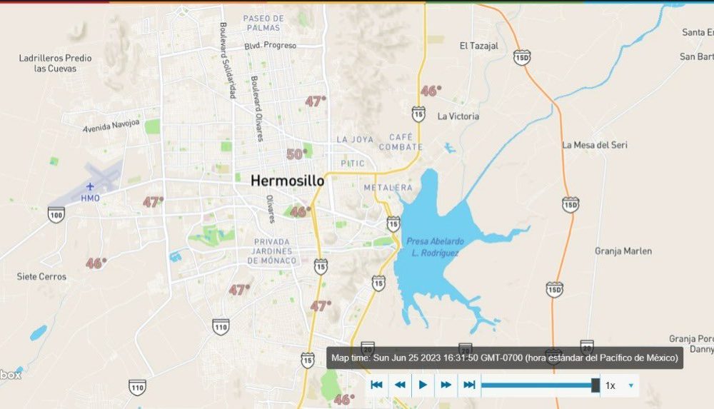 La Ciudad de Hermosillo alcanzó los 50 grados Celsius este domingo 25 de junio. medio grado arriba del récord registrado el 3 de junio del 2014...