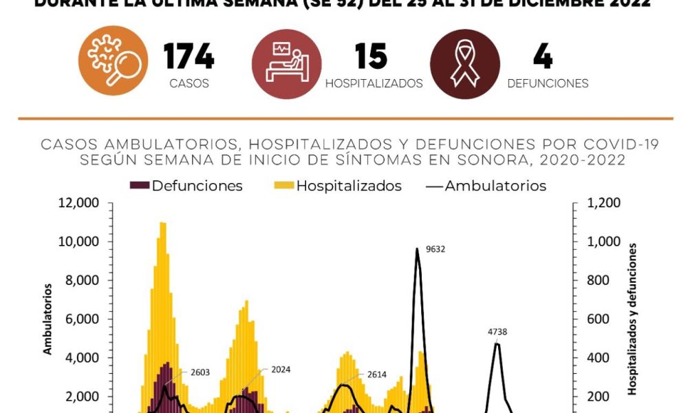 La Secretaría de Salud reporta 174 nuevos casos de Covid-19 y cuatro defunciones del 25 al 31 de diciembre de 2022. Los casos se presentaron en...