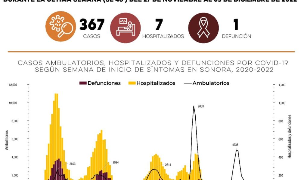 Durante la última semana, la Secretaría de Salud de Sonora confirmó 367 nuevos casos y una defunción por Covid-19. Siete pacientes se encuentran hospitalizados por la...