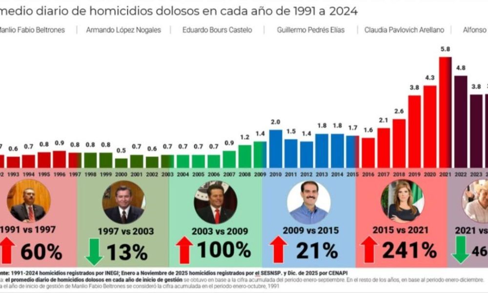 Bajo el liderazgo del gobernador Alfonso Durazo Montaño, Sonora ha logrado la mayor reducción en décadas del 46.7% en el promedio diario de homicidios dolosos, consolidando...
