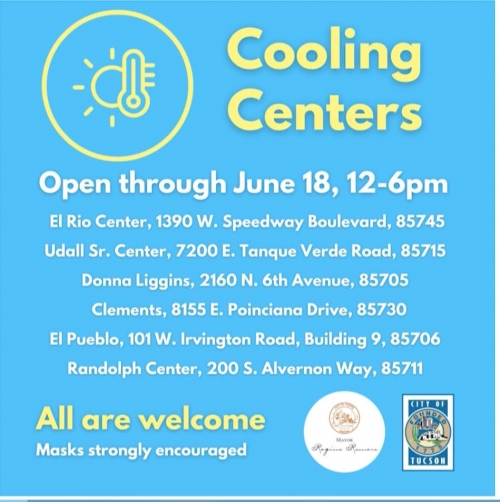 Tucson, Arizona, junio 16 de 2021.- La ciudad de Tucson ofrecerá centros de refrigeración con aire acondicionado en lugares accesibles, estarán abiertos a toda la comunidad de 12-6 p. m. hasta el viernes 18 de junio.