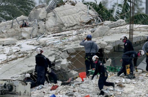 Miami, EU, julio 06 de 2021.- Otros cuatro cuerpos de víctimas del derrumbe de un edificio de 12 plantas en Surfside fueron hallados en las últimas horas, con lo que los muertos se elevan a 32 y la cifra de desaparecidos desciende a 113.
