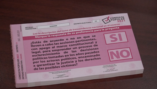 ¿Está de acuerdo o no en que se lleven a cabo las acciones pertinentes, con apego al marco constitucional y legal, para emprender un proceso de esclarecimiento de las decisiones políticas tomadas en los años pasados por los actores políticos, encaminado a garantizar la justicia y los derechos de las posibles víctimas?, su respuesta debe hacerla valer el próximo primero de agosto durante la consulta popular que por primera vez se llevará a cabo en el país.