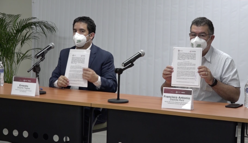 Participaron en la firma, la Vicerrectora del CRESON, Albana María Beltrán Ibarra y Francisco Edmundo Armenta Caballero, director de Enseñanza y Difusión del CEESTRA mientras que de testigos de forma virtual estuvieron más de un centenar de docentes y alumnos en educación.