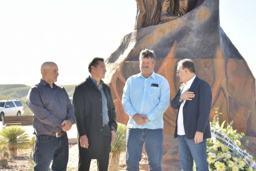 En presencia de Adam Langford, presidente municipal de Bavispe; Marlon Arturo Balderrama, artista sonorense que construyó el memorial, y miembros de la Guardia Nacional, el gobernador Durazo Montaño colocó una ofrenda floral, y mostró sus respetos en conmemoración de los hechos ocurridos el 4 de noviembre de 2019.