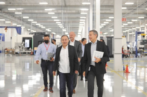 Al recorrer la planta AT Engine, fabricante de componentes para motores de aeronaves, el mandatario estatal atestiguó los distintos procesos de manufactura de piezas y componentes, los cuales cumplen con los más altos estándares de calidad en la industria aeronáutica.