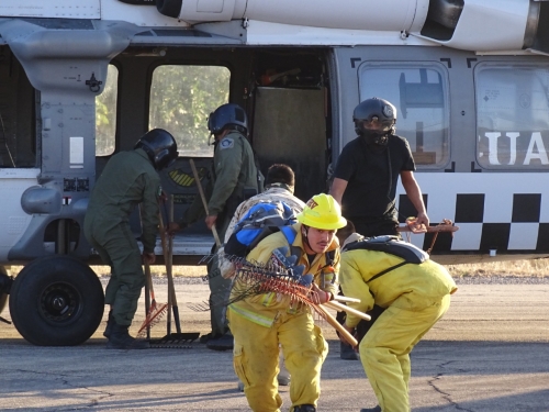 Se realizaron 55 descargas de agua con el MI-17 de la Secretaría de Marina, para un total de 135 mil litros con los que se atacó el fuego de forma directa.