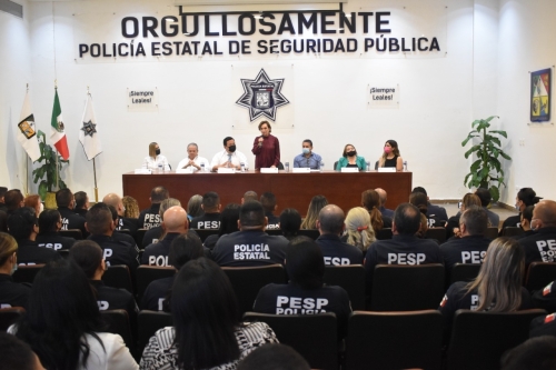 Posterior a la toma de protesta, se brindó una capacitación al personal de la secretaría, entre ellos, a elementos de la Policía Estatal de Seguridad Pública (PESP), sobre los objetivos y beneficios del órgano de Control Interno Institucional y perspectiva de género.