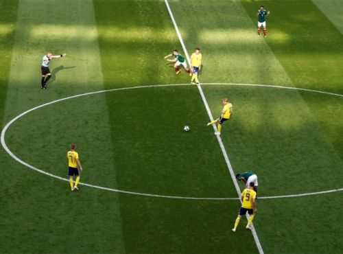 Ekaterimburgo, Rusia; 27 de junio de 2018.- Silbó el árbitro argentino Néstor Pitana y comenzó la batalla entre mexicanos y suecos con el firme objetivo de seguir con vida en la Copa Mundial Rusia 2018, en partido de la tercera fecha del Grupo F.