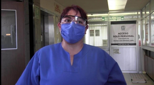 Ciudad de México, julio 01 de 2020.- Ámbar es trabajadora del Instituto Mexicano del Seguro Social en el Hospital General de Zona con Medicina Familiar No. 29 en la Ciudad de México y canta para inyectar energía a sus compañeros antes de iniciar sus labores en área COVID-19.