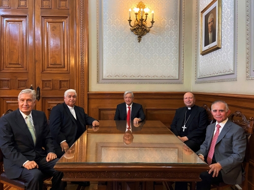 El mandatario mexicano recibió en el Palacio Nacional de Ciudad de México, donde despacha y vive, al nuncio apostólico Franco Coppola, al arzobispo Rogelio Cabrera y al académico David Noel Ramírez, quienes lo visitaron para avisar sobre el envío del papa Francisco.