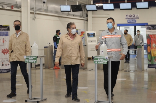 Navojoa, Sonora; septiembre 24 de 2020. La mano de obra sonorense calificada hizo posible el crecimiento de la planta Carrier en este municipio, declaró Jorge Vidal Ahumada, secretario de Economía en su recorrido por dicha industria.